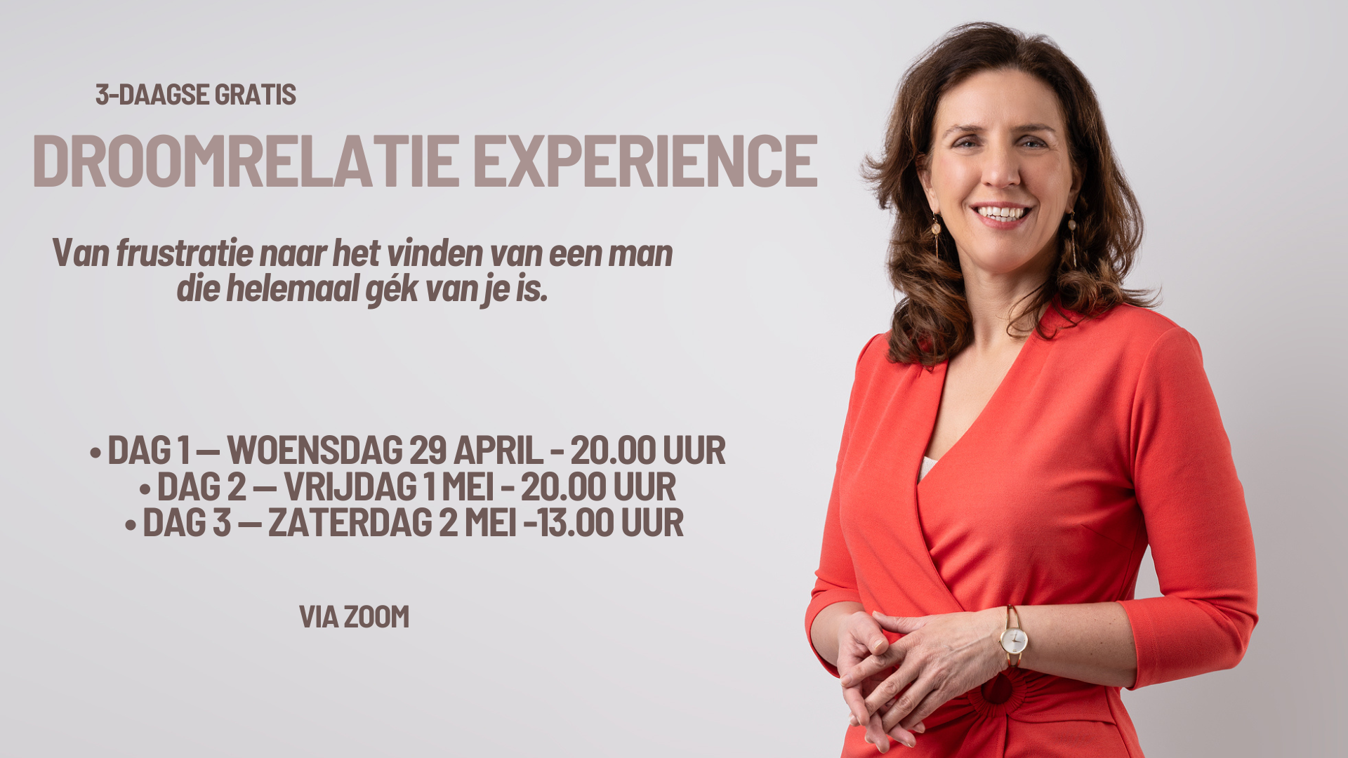 Tijdens deze gratis 3‑daagse experience leer je hoe je je dating‑ en liefdesleven kunt verschuiven door daten te benaderen op een manier die natuurlijker voelt, opener… en verrassend genoeg veel effectiever.